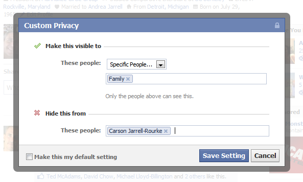 Furthermore, the idea of segmented friends list is a feature that is already implemented quite robustly in Facebook. It is called “friend lists.” In fact, the feature is more powerful in Facebook becuase I can control my sharing all the way down to the specific individuals irrespective of the lists they may belong to. That means I can share an update with me “family” list but exclude my daughter — so I can plan a surprise birthday party for her.