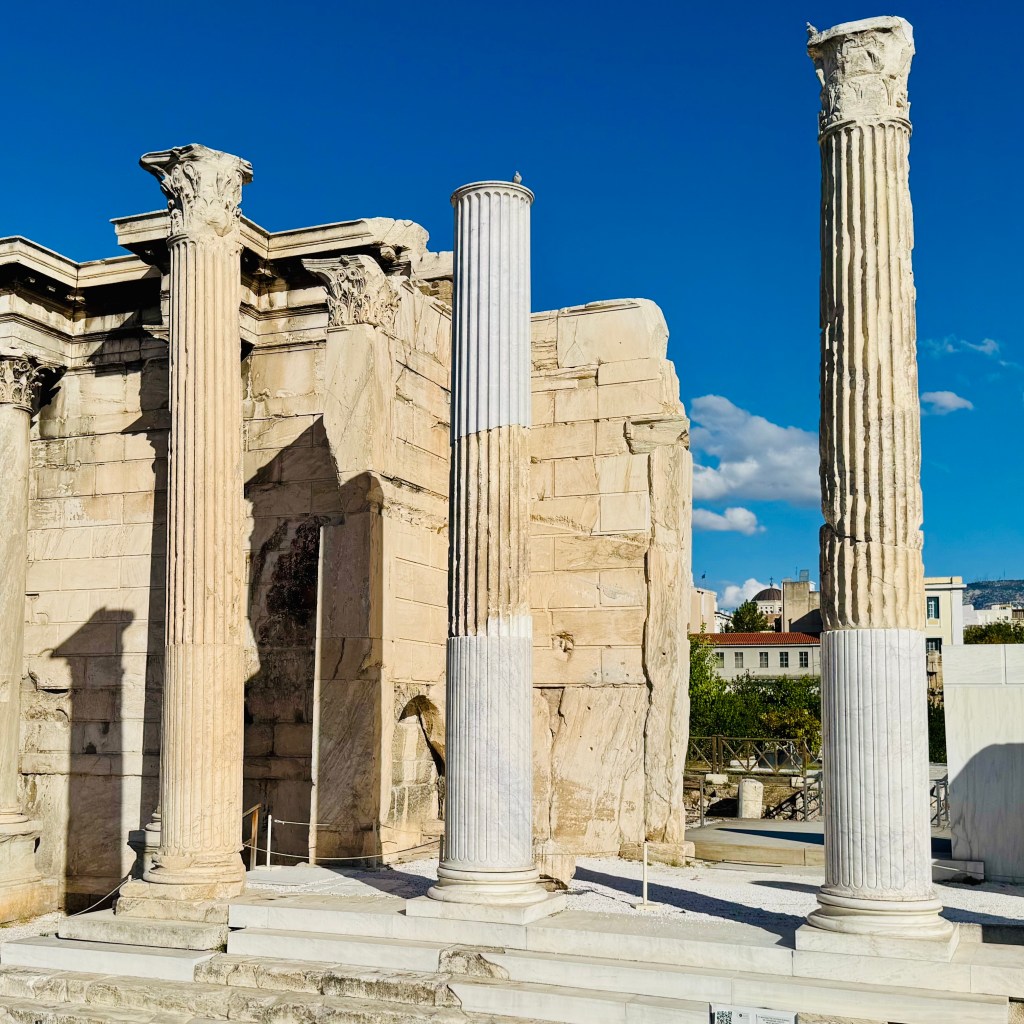 In Athens last week, I walked among ruins around which the modern city had grown. Stone columns beside electric vehicles. The air itself carries argument between old and new. The remains of the Acropolis loom over the city. Hadrian’s Library is tucked into a neighborhood.